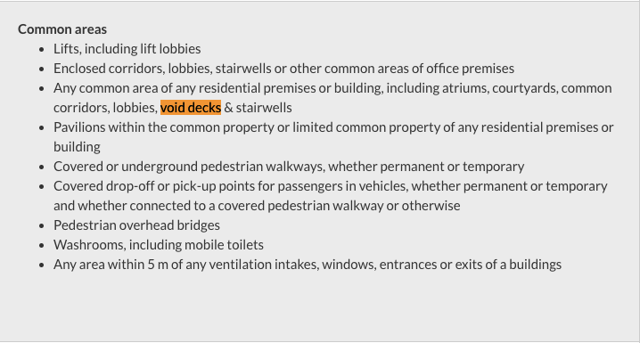 Namun, menerusi lelaman gov.sg, merokok di kolong blok dilarangkan.