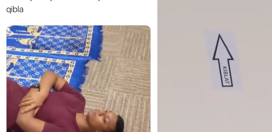 Rakan Aathiq ternampak tanda anak panah kiblat yang menunjuk ke arah atas awan, dan dia segera memulakan rutin sembahyangnya ke arah itu.
