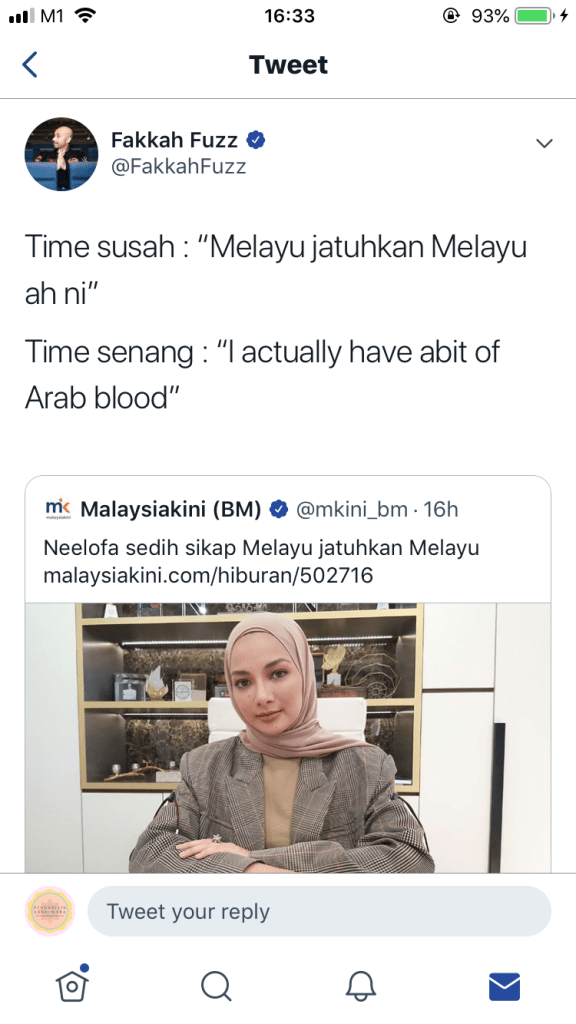 Apabila kes Neelofa dan susunya menjadi perbualan ramai, pengguna Twitter terkenal di Malaysia menghantar tweet ini: