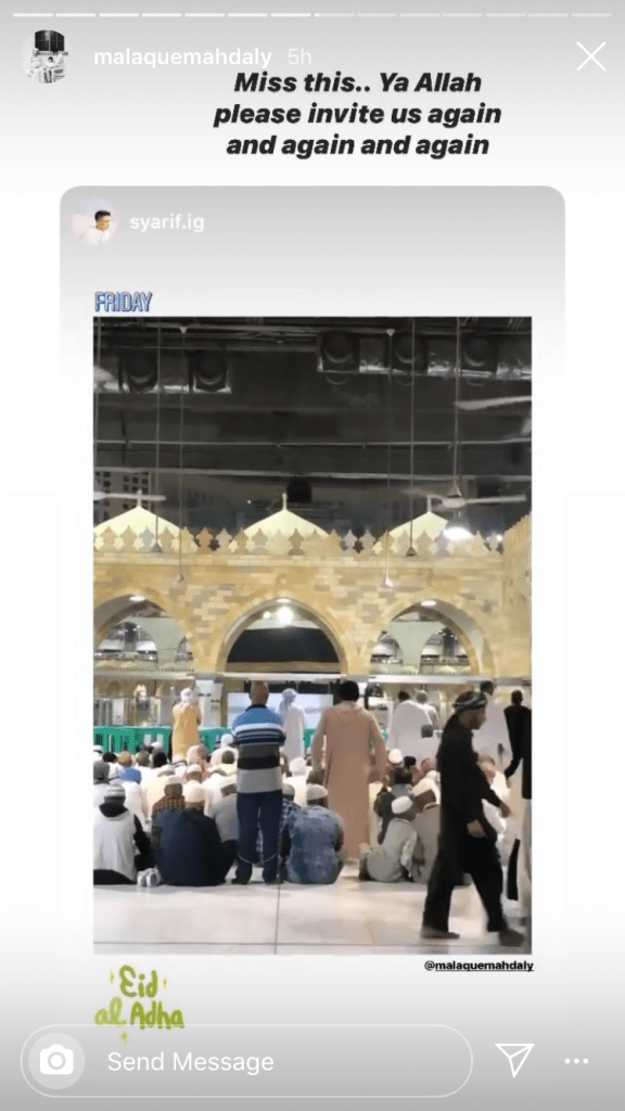Sani Hussin mengongsi gambar dengan ucapan Hari Raya Haji. Dalam kapsyennya, dia juga menulis “moga-moga kita semua akan dijemput Allah ke Tanah Suci”. InsyaAllah.