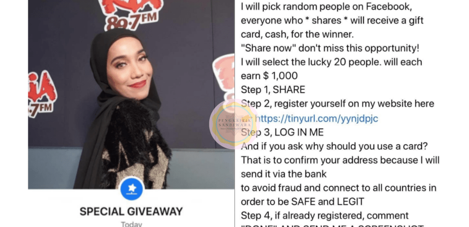 Dah lama tak dengar berita tentang kes pencurian identiti dengan tujuan menipu di Fesbuk, kan? Tapi, sekumpulan scammers ni tak nak putus asa! Baru-baru ini, DJ Ria Nity Baizura pula menjadi sasaran.
