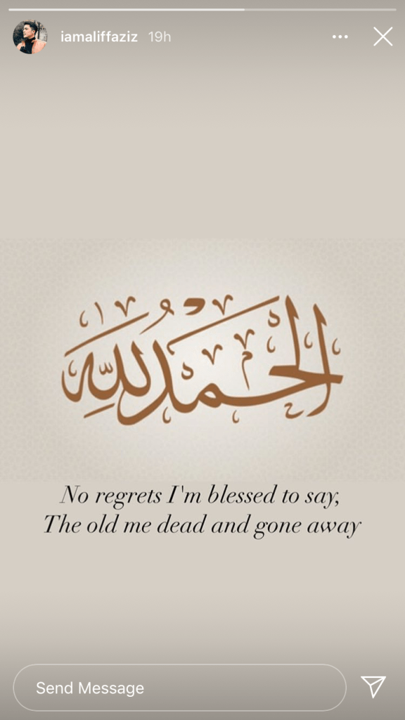 Bertulis di IGnya, Aliff berkata, “Saya bersyukur untuk menyatakan tiada kesal, yang lama telah tiada dan sudah pergi.”