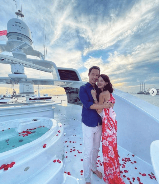 Dalam gambar, nampak seperti tunang pelakon 7 Penjuru itu dipropose di sebuah kapal layar ataupun yacht! Romantis sungguh, dengan kelopak bunga ros berwarna merah ditaburi di kapal itu.