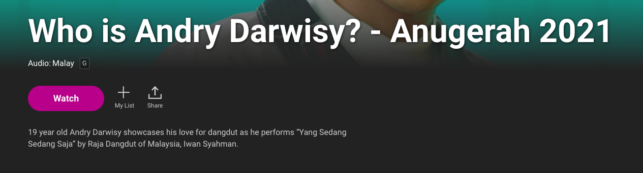 Baru-baru ini, Mediacorp Suria telah memuatnaikkan video klip nyanyian para peserta Anugerah 2021 di wadah penstriman kegemaran ramai, iaitu Toggle MeWATCH.