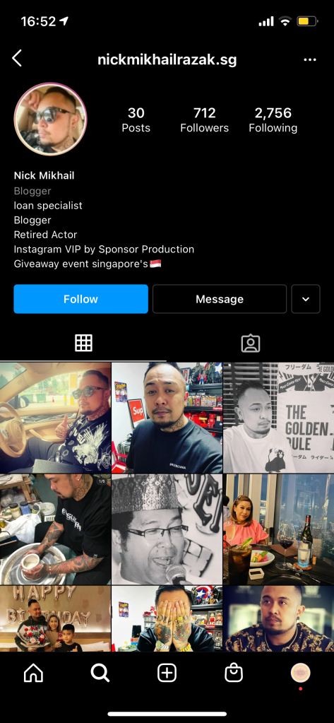 Beliau menulis di IGnya bahawa akaun yang menyerupainya adalah palsu, bersertakan tanda pagar #anjing.