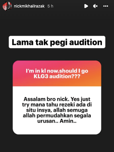 Walau bagaimanapun, sekiranya Nick benar-benar pergi audition KL Gangster 3, kami ucapkan yang terbaik! Dan kalau terpilih, dah sama taraf dengan pelakon asal Singapura seperti Aaron Aziz dan Adi Putra.