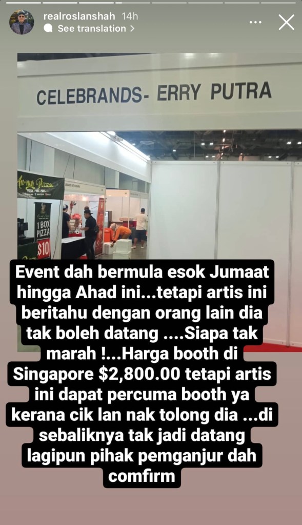 Pelakon popular Malaysia, Erry Putra, yang dipercayai sudah diberi reruai di acara Halal International 2022 yang berlangsung hari ini hingga Ahad belum buat sebarang persiapan di Marina Bay Sands Expo & Convention Centre.