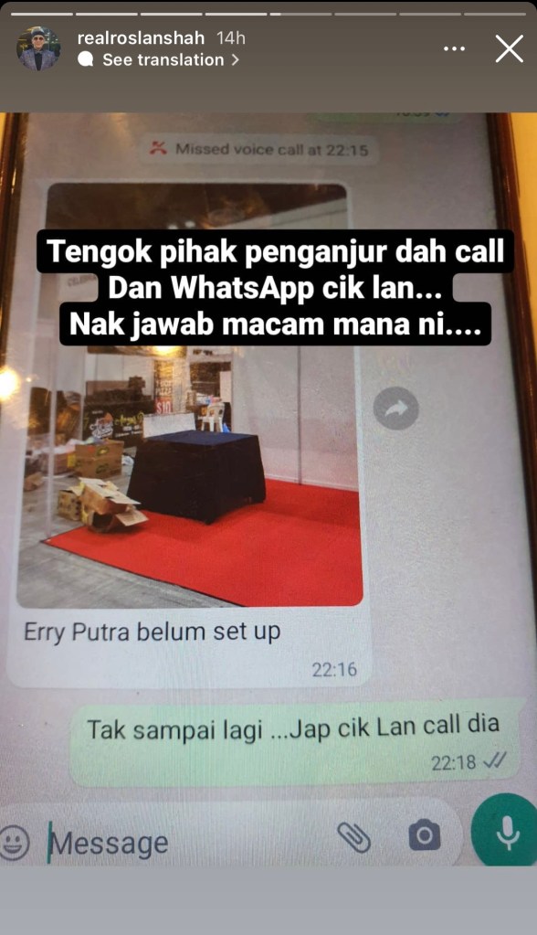 Difahamkan Erry Putra memberitahu ‘orang lain’ bahawa beliau tidak dapat hadir.