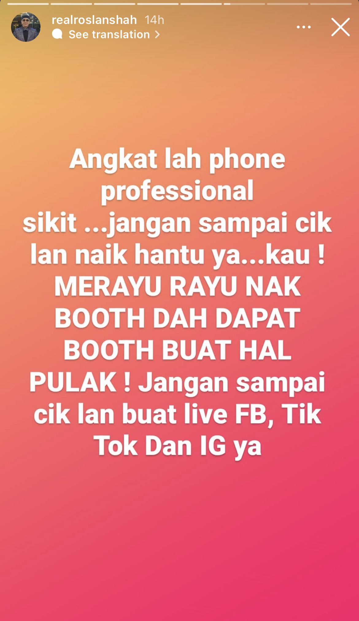 Apabila dihubungi, Cik Lan menulis di IGSnya dan berkata bahawa talipon tidak diangkat. Besar kemungkinan Cik Lan akan spill the T di sesi LIVE TikTok, FB dan IG?