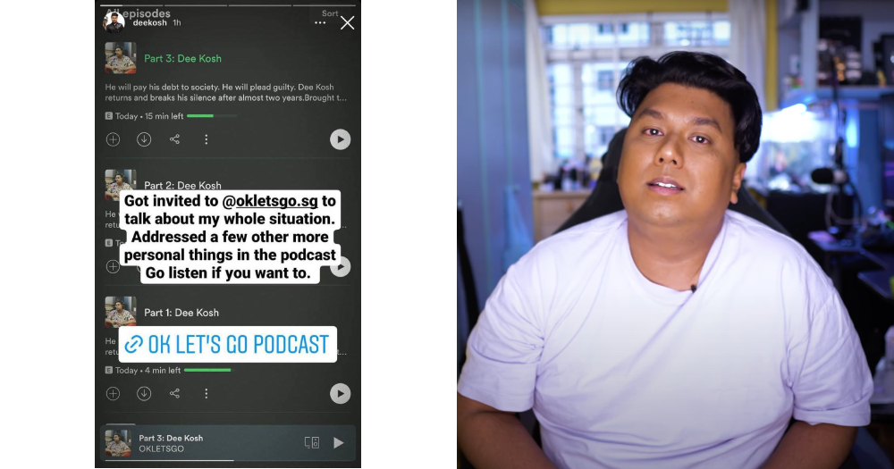 Deekosh yang kini di penjara atas kesalahannya pernah meluahkan dirinya di salah satu podcast Singapura iaitu… OKLETSGO. Namun, episod itu difahamkan tiada lagi. Kenapa?