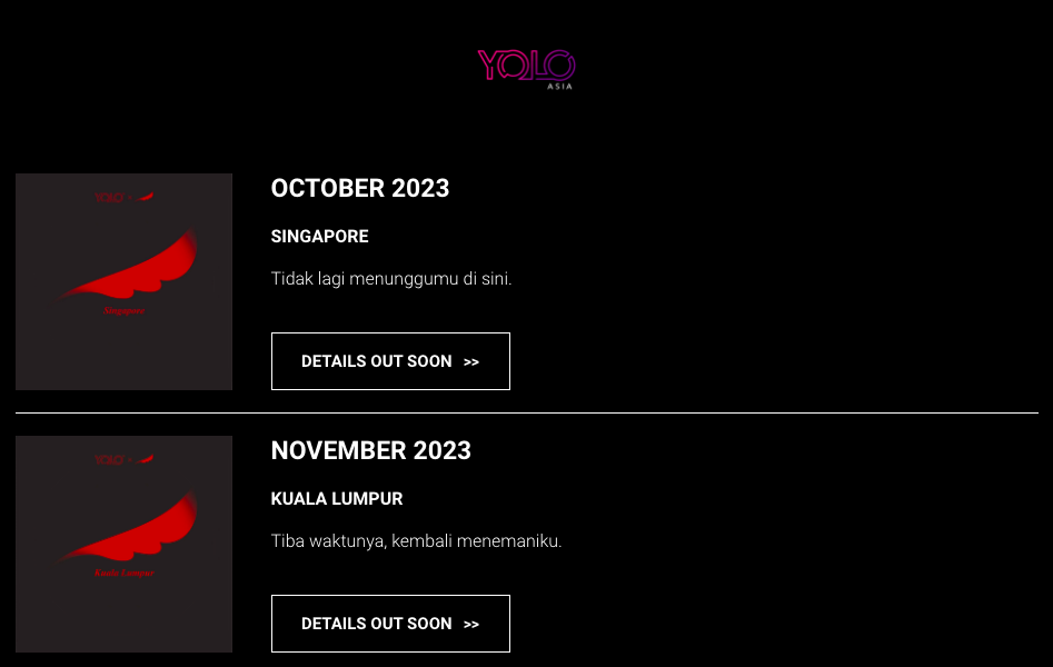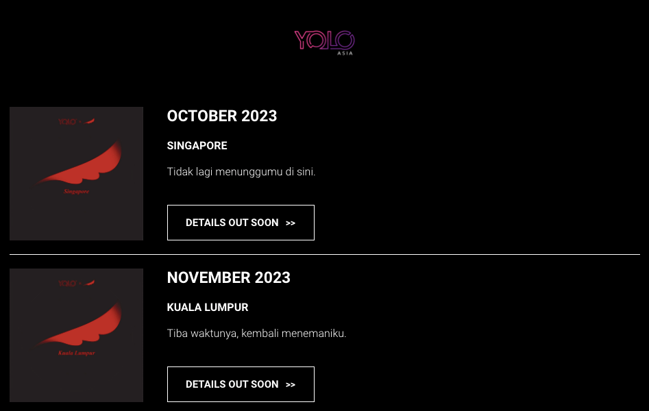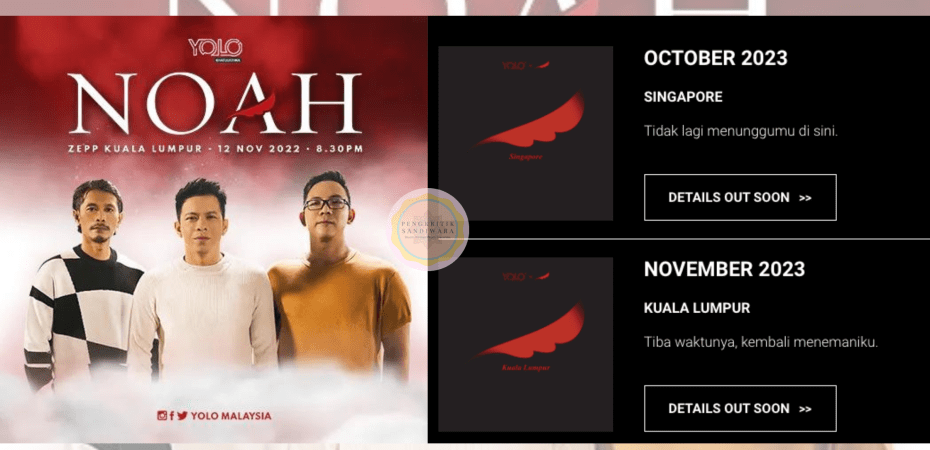 Menurut lelaman itu, tertera logo Noah serta bulan di mana konsert di Singapura mungkin akan diadakan dan setelah itu, di Kuala Lumpur pada bulan seterusnya.