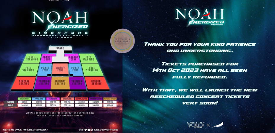 Awal semalam, akhirnya Yolo Singapore mengumumkan harga tiket bagi konsert NOAH.