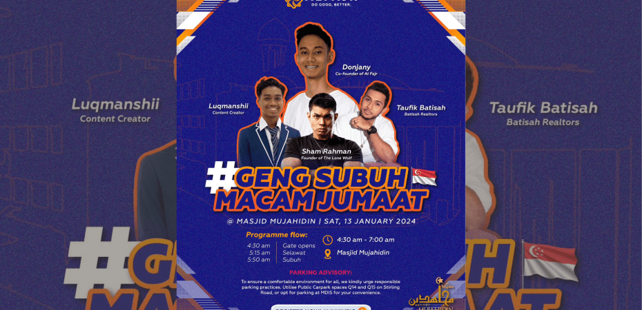 Ini merupakan kali kedua acara serupa anjuran Al Fajr ini berlangsung. Minggu lepas, acara Geng Subuh Macam Jumaat berjaya diadakan di Masjid Yusof Ishak pada 6 Januari.
