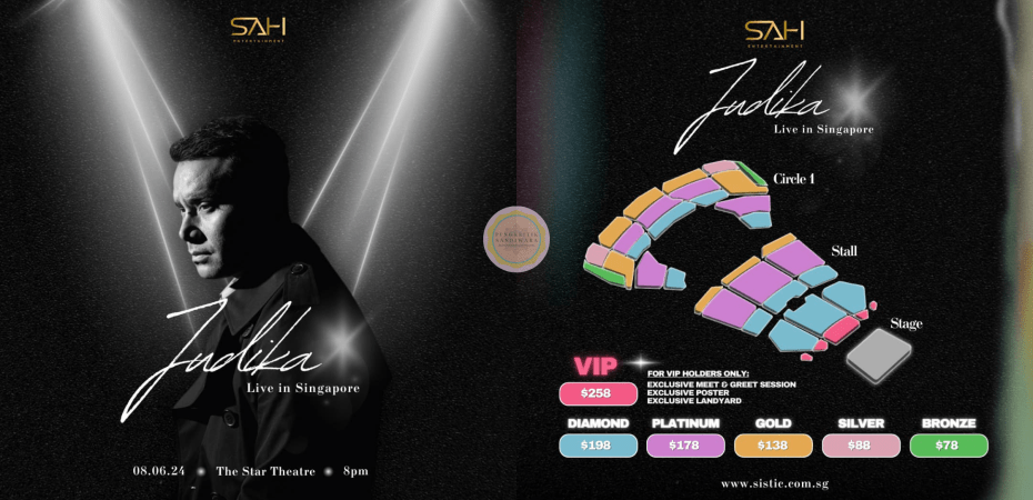 SAH Entertainment semalam telah mengumumkan tanggal penjualan tiket serta harga tiket bagi konsert JUDIKA Live in Singapore.