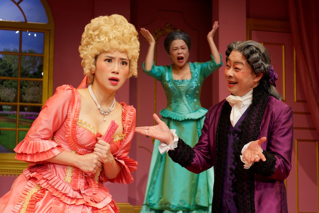 Isteri Orgon, Elmire (Jo Tan) kurang setuju dengan cara hidup Orgon yang secara mendadak warak.