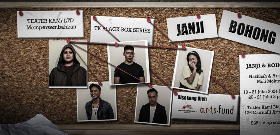 Anda boleh saksikan Bohong dan Janji di Teater Kami Black Box Studio di 126 Cairnhill Arts Centre pada 19 Julai hinga 21 Julai.