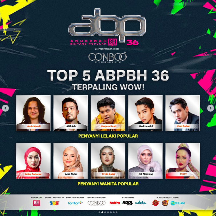 Selain Aliff Aziz, dua lagi selebriti asal Singapura juga turut tercalon dalam ABPBH yang ke-36 ini.