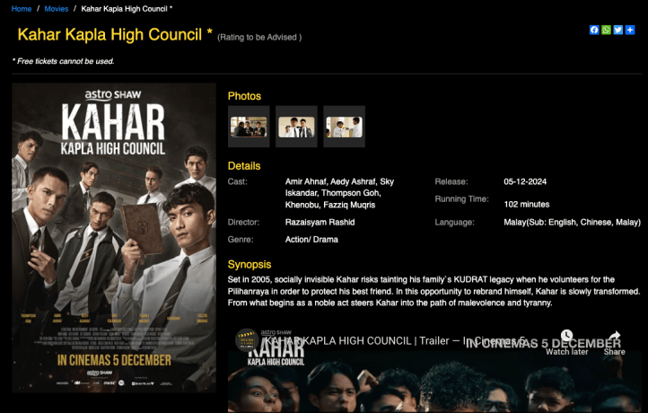 Namun, sama ada pawagam lain seperti Cathay Cineplexes dan Shaw Theatres akan menayangkan filem ini masih belum dapat dipastikan. Jadi, stay tuned untuk pengumuman lanjut!