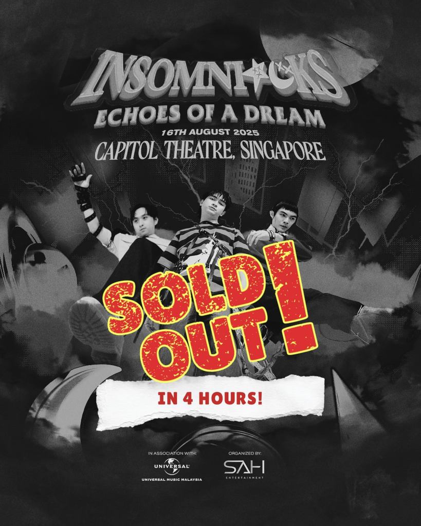 Tiket bagi konsert sulung Insomniacks di Singapura laris bak goreng pisang panas dan habis terjual dalam masa 4 jam sahaja.