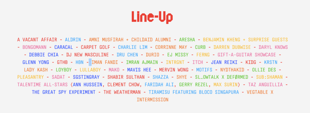 Pesta muzik ini akan berlangsung di dua pentas berbeza, menampilkan lebih daripada 60 bakat setempat dari pelbagai genre dan generasi.
