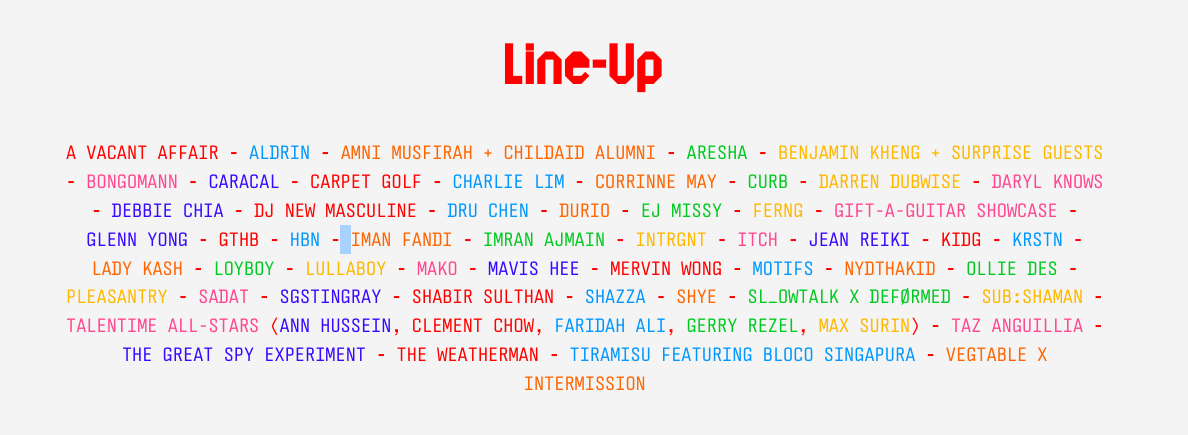 Pesta muzik ini akan berlangsung di dua pentas berbeza, menampilkan lebih daripada 60 bakat setempat dari pelbagai genre dan generasi.