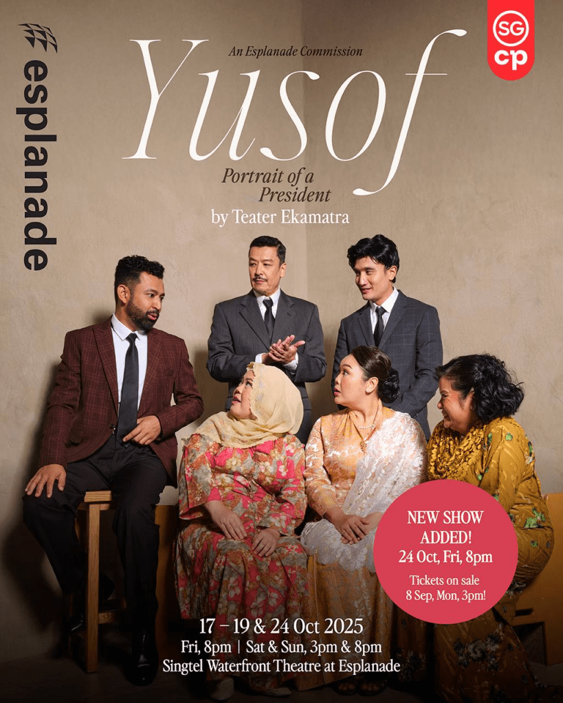 Yusof, Portrait of a President, sebuah pementasan mengisahkan presiden pertama Singapura akan berlangsung dari 17 hingga 19 Oktober (sold out) dan 24 Oktober di Teater Dermaga Singtel di Esplanade.
