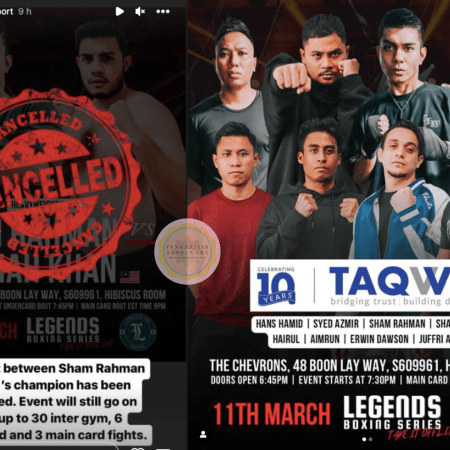 Pertarungan Sham Rahman vs Shah Khan dibatalkan