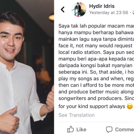 Hydir Idris ingin radio mainkan lagunya